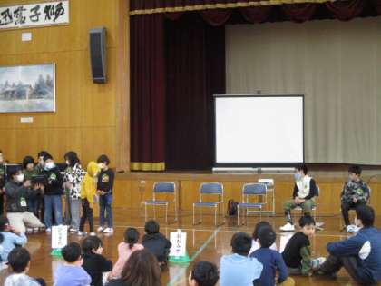 今日は、紫竹小学校にて支部育成学級合同お別れ会がありました。本校ろ組児童も参加し、支部のお友だちと楽しい時間を過ごしました。
