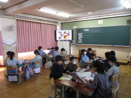 3年生は、外国語活動担当の先生がWho are you?の学習を進めていました。4年生は、総合的な学習の時間で未来をひらくの学習でした。