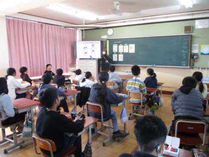 こちらは3校時の様子です。5年生は、養護教諭がけがの防止の指導をしていました。6年生は、社会で世界の未来と日本の役割の学習でした。