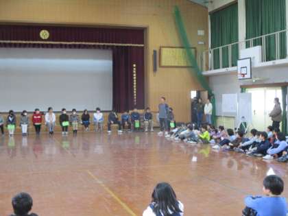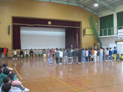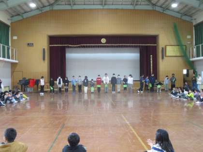 今日の3校時、体育館にて6年生を送る会を実施しました。5年生は司会進行を担当し、各学年からの発表や1年生からは記念メダルを、2年生からはメッセージカードを6年生にプレゼントしました。最後には、6年生が歌やビデオメッセージを披露してくれました。6年生にとって、小学校生活も残りわずかになりました。今日のこの送る会が、小学校生活の思い出の一つになれば嬉しく思います。