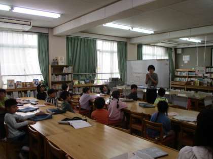 今日の3校時、1年生は算数でわくわくすたあとの学習でした。2年生は、学校司書の先生から図書室や読書のお話がありました。