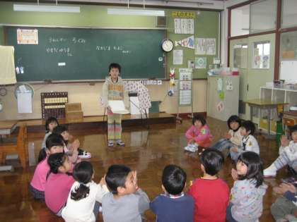 1年生のお友だちがろ組の教室に訪問してくれました。みんなで自己紹介をした後,歌を歌ったり,じゃんけんゲームをして楽しい時間を過ごしました。なかよしいっぱいのスタートです。