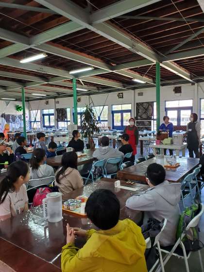 淡路島牧場に少し早めに到着しました。記念撮影を済ませて、これから昼食のカレーライスをいただきます。