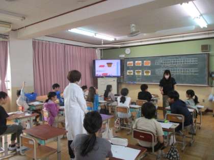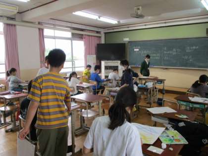 5年生は、算数で比例の学習でした。6年生は、図工で音のする絵の学習でした。