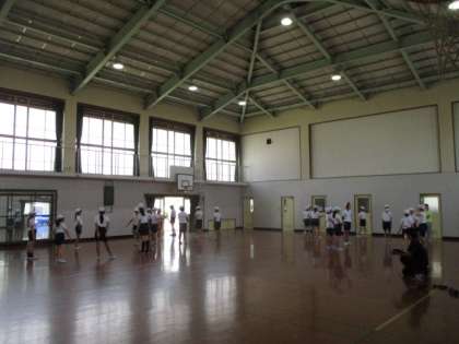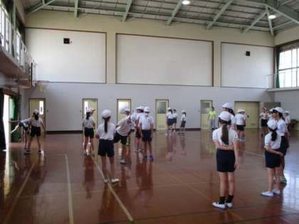 5・6年生は、合同で運動会の団体演技の練習をしていました。小グループに分かれて、一人技の精度を高めていたようです。