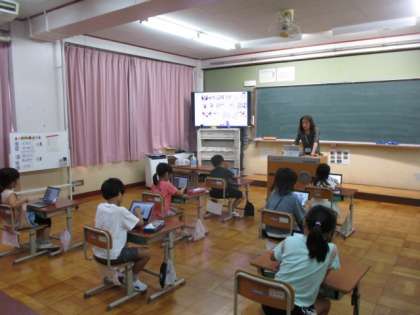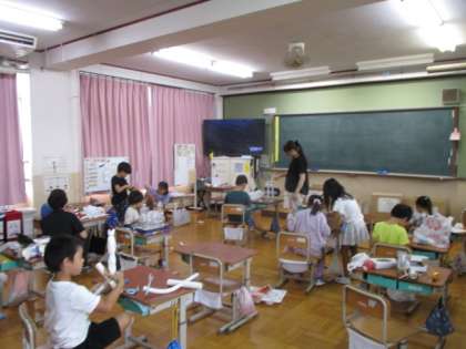 今日の5校時、1年生はICT支援員の先生と一緒にタブレットでプログラミング学習をしていました。2年生は、生活科であそんでためしてくふうしての学習でした。