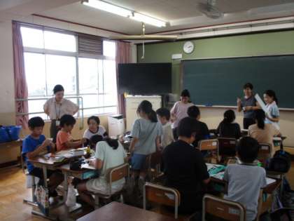 5年生は、総合的な学習の時間で元町まつりのリユースショップの準備をしていました。6年生は、理科で水よう液の性質の学習でした。