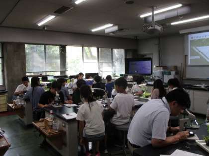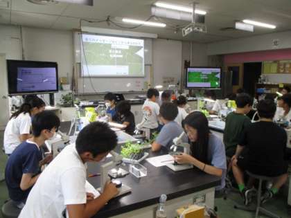 こちらは、クスノキやレモンバームなどの葉を観察している様子です。香りはどこから出るのかを探っていました。
