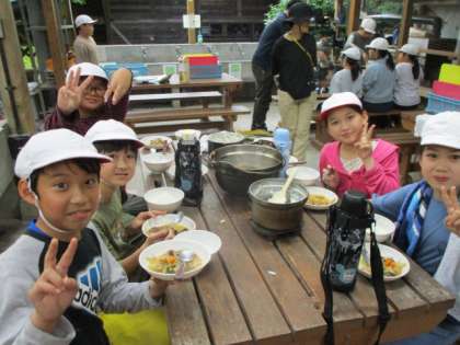 牛すき焼き風煮ができあがり、各班でおいしそうに食べていました。予定より時間はかかりましたが、みんな楽しそうに活動していました。