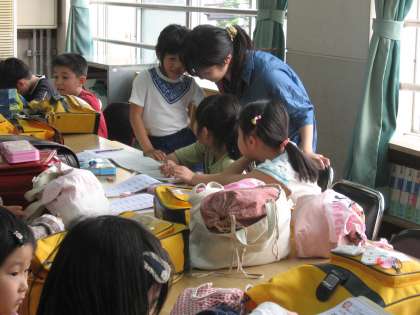 席に着くと早速,宿題から取りかかる子どももいれば,自分が用意