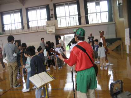 5月9日に大宮小学校で,北上支部の育成学級合同行事「みんなよろしく大会」がありました。各校からの自己紹介・出し物発表をし,歌・ダンス・ゲームもみんなで楽しみました。すいかマンやドナルドさん・ポンタさんも参加して,にぎやかにみんなで大盛り上がりの楽しい会でした。元町小学校ろ組のお友だちも一人でがんばって,自己紹介や学校長・担任の紹介をしました。鍵盤ハーモニカの演奏や自分で作った工作の作品も披露しました。