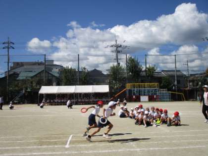こちらは、1・2年生アイディア走リレーの様子です。