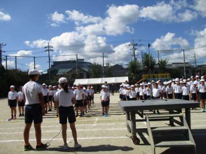 こちらは、閉会式の様子です。児童のみなさん、本当に今日は頑張っていましたね。先生たちみんながそう思っています。10月15日(火)はお休みなので、また16日(水)に元気に登校してください。
