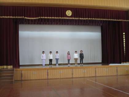 今日の3校時、1年生は体育館で学習発表会の練習をしていました。2年生は、図書室で静かに読書をしていました。