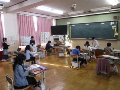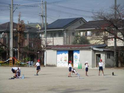 今日の3校時、1年生は体育でなわとびの学習でした。2年生は、図工でたのしくうつしての学習でした。