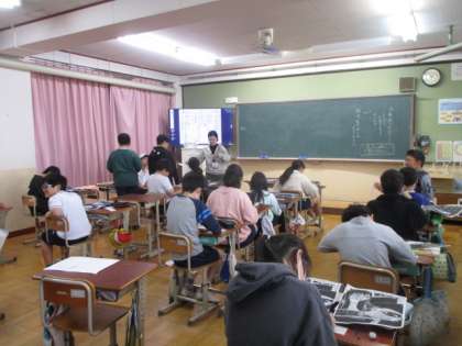 5年生は、体育で跳び箱運動の学習でした。6年生は、図工で版画作品に名前カードを添付していました。