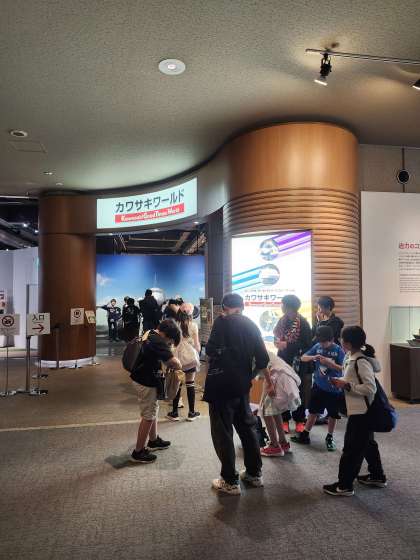 こちらは、カワサキワールドの入口です。たくさん体験できるところがあるので、子どもたちはいろいろチャレンジしていました。みんなとても元気に活動しています。