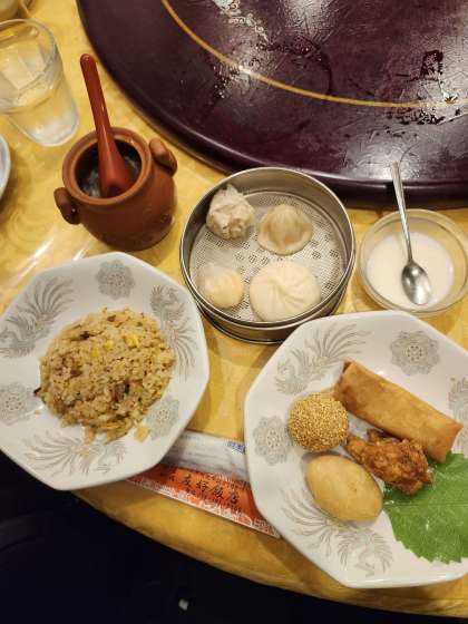 こちらが飲茶ランチのメニューです。フカヒレスープにチャーハン、揚げ物に蒸し物と十分味わえました。デザートには、杏仁豆腐がついてました。この後、南京町で買い物タイムです。