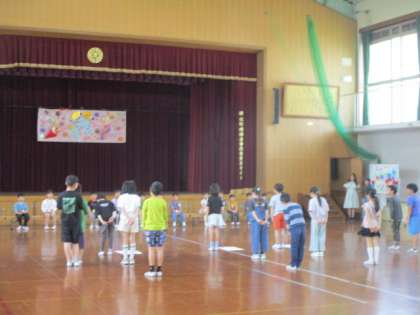 6年生からの言葉の後には、サプライズでじゃんけん列車をみんなで楽しみました。2年生の児童が最後まで勝ち上がりました。