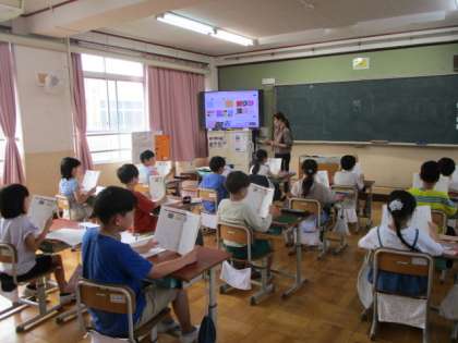 3年生は、国語で文様の学習でした。4年生は、書写で毛筆「日記」の学習でした。