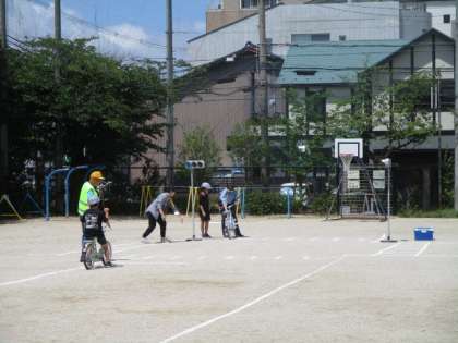 こちらは4年生の様子です。3年生と同様に実技に取り組み、その後は自転車免許証を発行してもらいました。4年生もみんなとても慎重に自転車を運転していました。北警察署、北地域交通安全活動推進委員ならびに保護者ボランティアの皆様、子どもたちへの安全指導にご協力いただきありがとうございました。