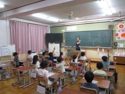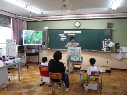 今日の5校時、ろ組は栄養教諭が食の指導のお話をしていました。1年生は、国語でかたかなの練習をしていました。2年生は、国語であったらいいなこんなものの学習でした。