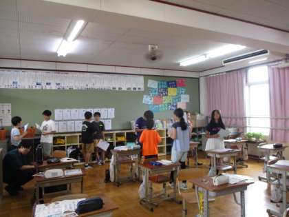 5年生は、家庭科でひと針に心をこめての学習でした。6年生は、外国語科でMy Weekendの学習でした。