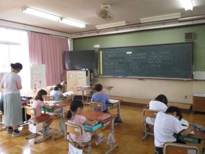 今日の3校時、ろ組は音読カードを作っていました。1年生は、国語でやくそくの学習でした。2年生は、算数でたし算とひき算のひっ算の学習でした。