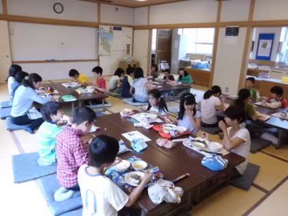 ランチルームで給食を食べました。