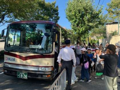 5年生は今日から二泊三日で花背山の家に宿泊学習に出かけます。さわやかな秋晴れの朝、全員集合で出発式を終え、元気な声で「行ってきます」と山の家に向けて出発しました。保護者の皆様、朝早くからの見送りをありがとうございました。