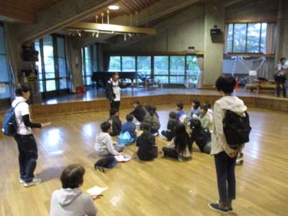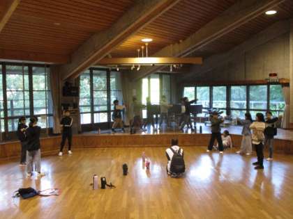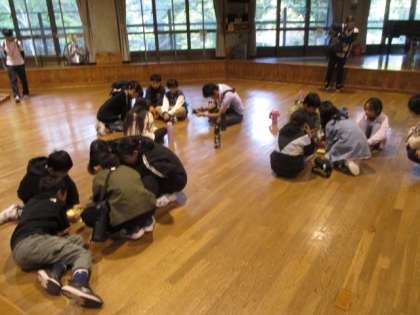朝の集いが終わり、朝食まで少し時間があったのでホールで健康観察をしました。その後まだ少し時間があったので、運動会の団体演技の練習をしている姿がありました。