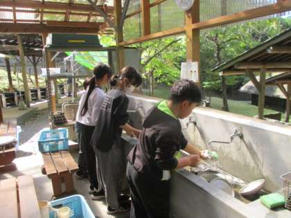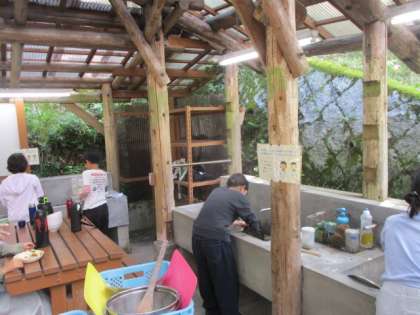 カレーライスを食べた後は、みんなで後片づけをしました。どの班もカレーライスがとてもおいしかったので、残菜はほぼなかったです。この後片づけが終わると、予定通りふり返りを行います。子どもたちは変わらず元気にしています。