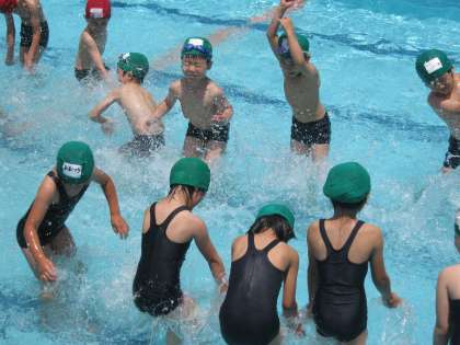 夏の日差しが素肌に感じる季節となりました。子供たちにとって待ち望んだ水泳学習の時期になりました。1,2年生合同で初めてプールに入りました。水しぶきを上げて楽しんでいました。