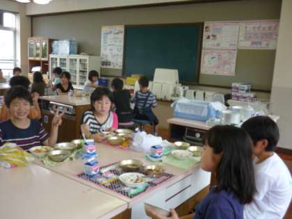 1週間後に出発するみさきの家の準備のためにカレーづくりをしました。はじめての調理実習のわりには、みんなの手際がよく、予想より早くカレーができあがりました。ジャガイモをむくのもタマネギを切るのも、そして、後片付けも、どの班も協力してやり終えることができました。