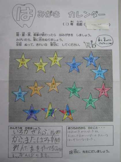 歯みがきカレンダー(朝・昼・夜)をつけました。