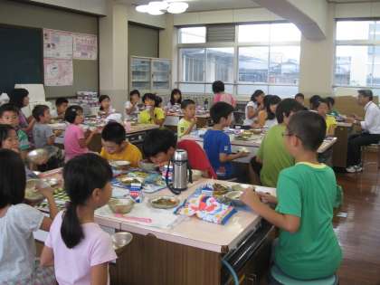 だちや教職員のみなさんと一緒に給食を食べました。いつもはあま