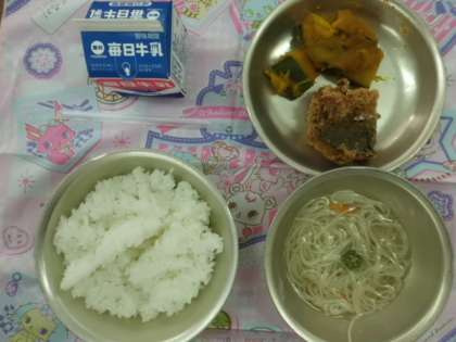さばのたつたあげ,かぼちゃの煮つけ,七夕そうめん」