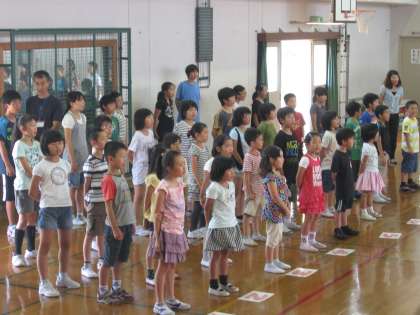 合唱しました。全校児童で合わせて歌ったのは,今日がはじめて