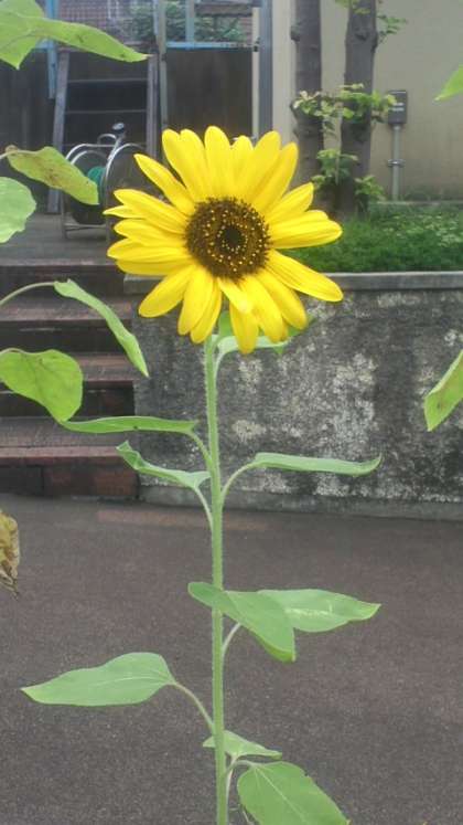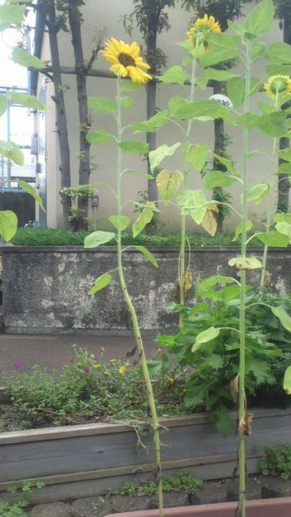正門のプランターで育てていたヒマワリが夏の訪れとともに咲き始めました。