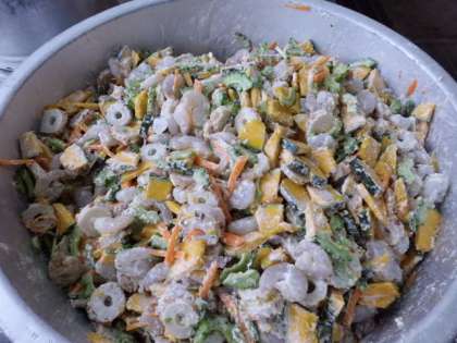 夏が旬の「かぼちゃ」と「ゴーヤ」を使って作りました。