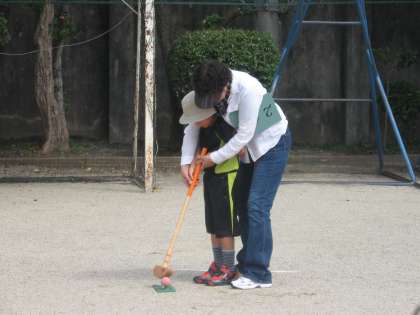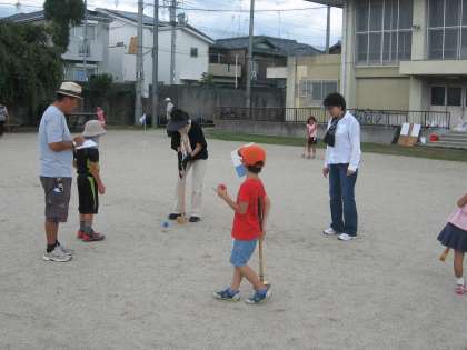 方など,基礎的なことを丁寧に教えてもらいながらグランドゴルフを