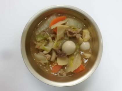 豚肉,いか,人参,うずら卵,たけのこ,干しいたけ,しょうが,