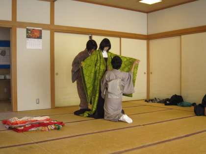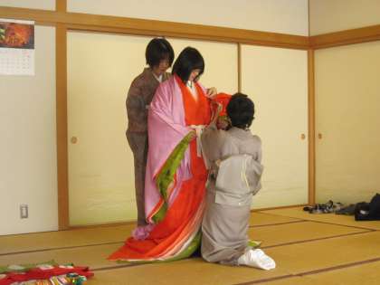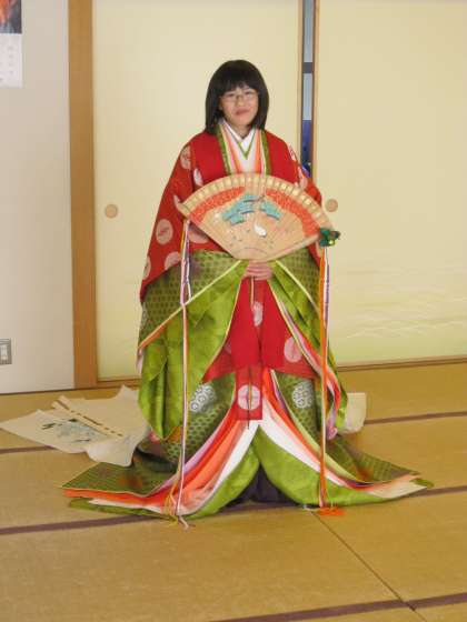 キモノ一枚一枚は大変軽いのに,十二単全体の重さが18kgもあり,