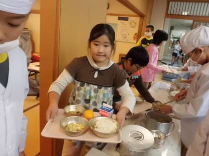 5年生が4年生の分まで給食当番をして準備も後片付けもしてくれました。
