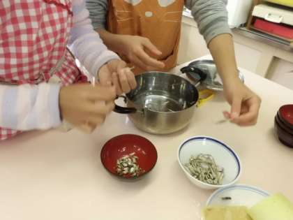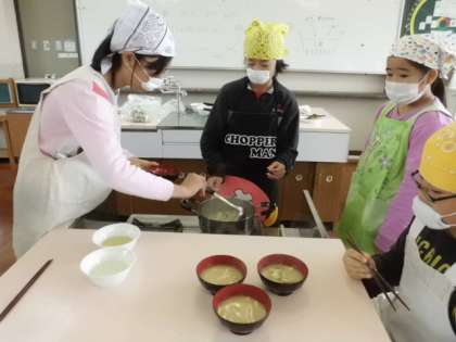 5年生が家庭科の調理実習で「みそ汁」を作りました。