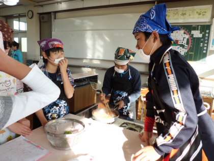 今日は,6年生が家庭科の調理実習で,