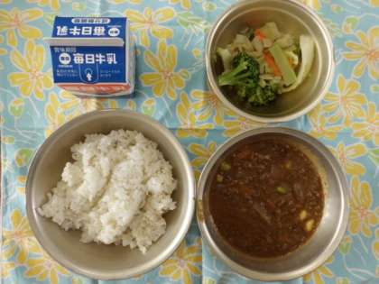 今日の給食の「キーマカレー」は,