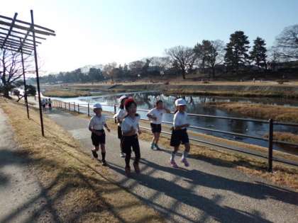 ばりです。1年生の子どもたたちは,はじめての元町っ子マラソンで