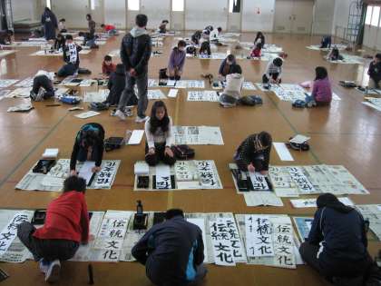 5年生は『平和な国』を,6年生は『伝統文化』を毛筆で書き