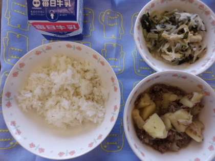 「麦ごはん,牛乳,肉じゃが,切干大根の煮つけ」